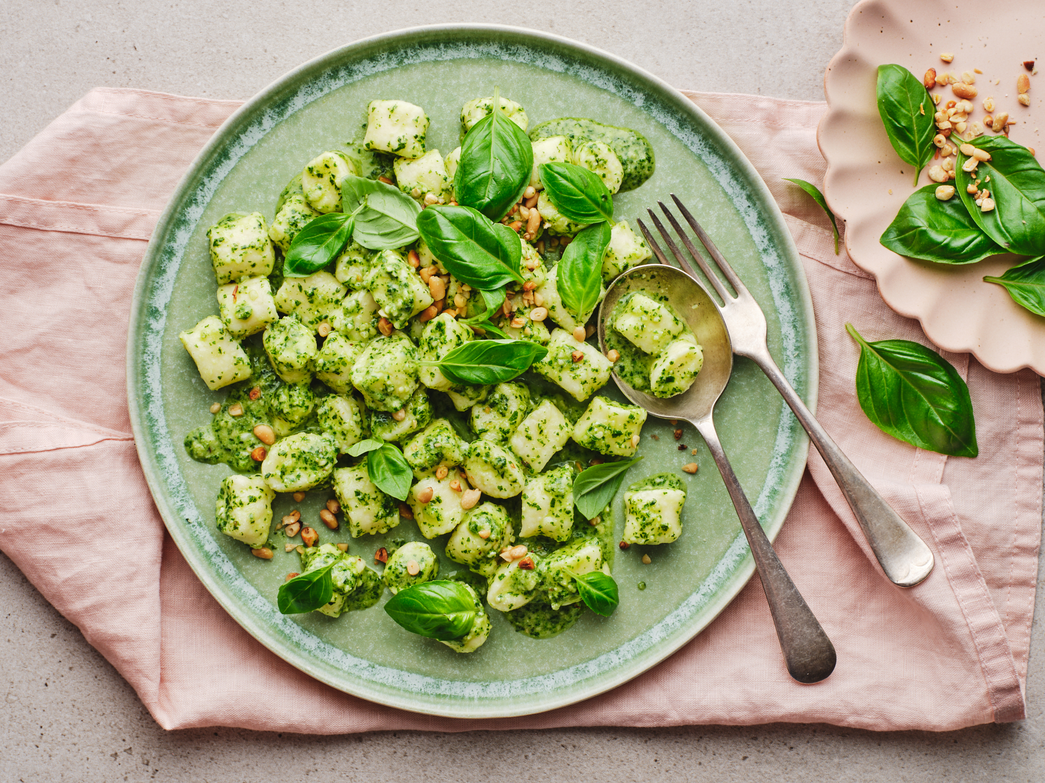 - Serve gnocchi garnished with extra basil leaves and pinenuts.