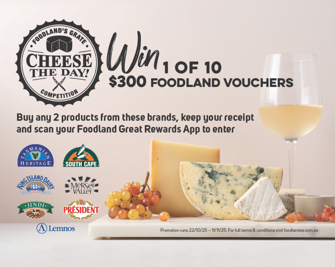 Buy any 2 products from the list of brands below, scan your Foodland Great Rewards Card at the checkout and go in the draw to win 1 of 10 $300 Foodland vouchers!